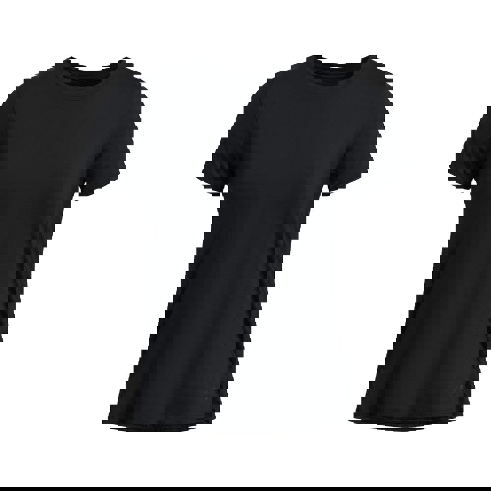 This short-sleeved T-shirt is made from 90% nylon and 10% elastane, with a 4-way stretch, soft-touch finish. It has a plain black design with a back print and logo, finished with a crew neckline and side vents at the hem.