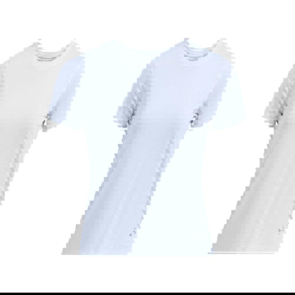 This short-sleeved top from Under Armour comes in light blue with a plain finish and a back print. It has a crew neckline and a loose fit, making it suitable for everyday wear.