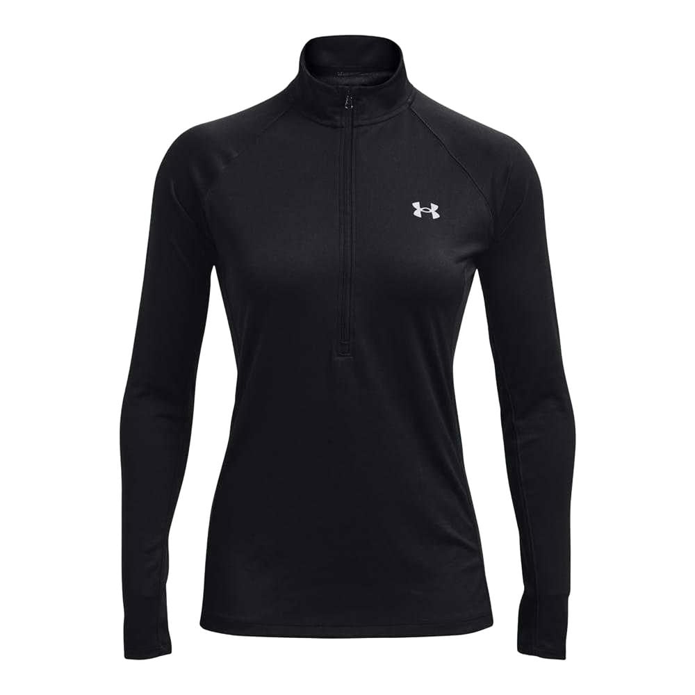 This women’s half zip top from Under Armour is made from 100% polyester with a soft-touch finish. It pulls on easily and fastens with a half zip, finished with a standing collar for a clean, sporty look.