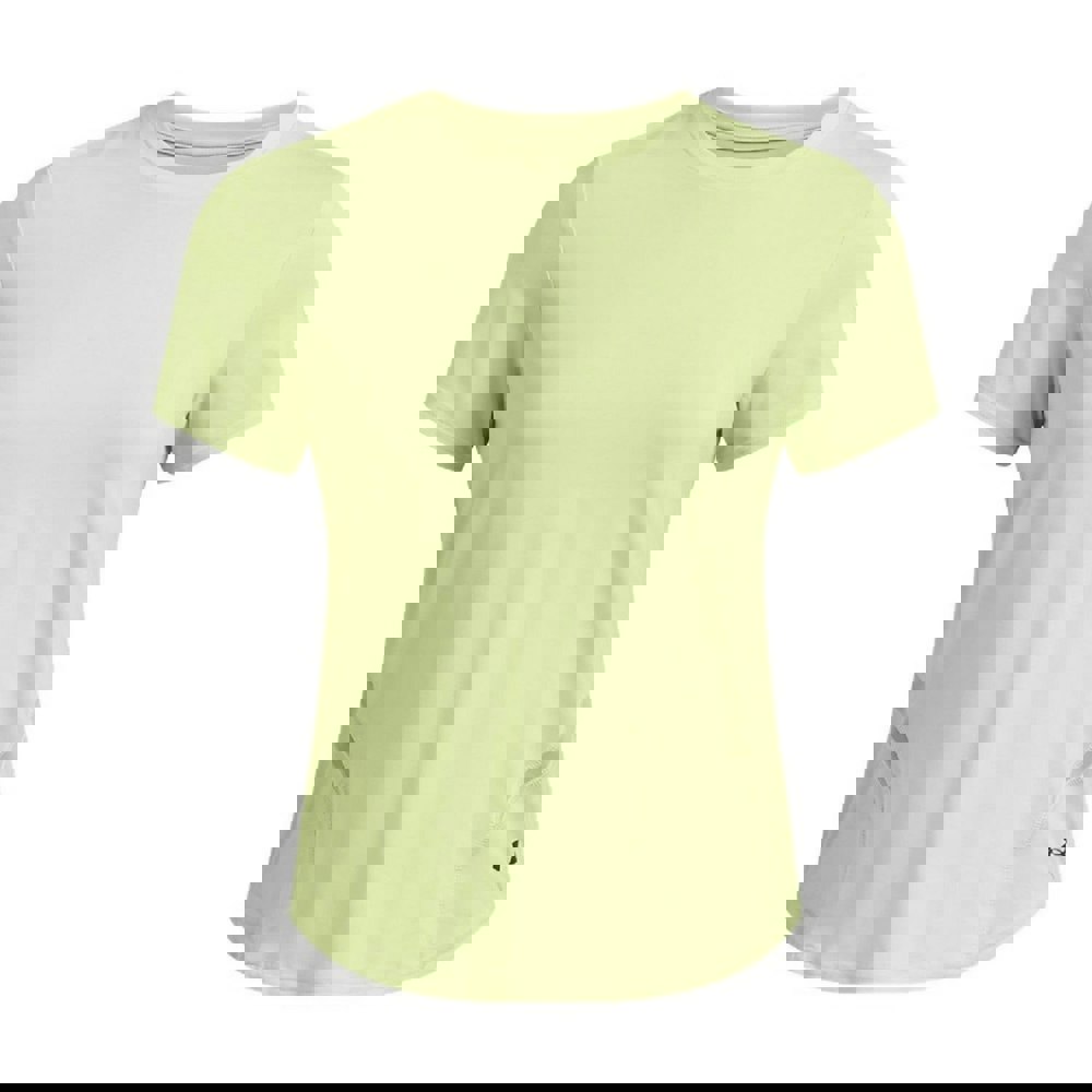 Under Armour Vanish Elite ArmourVent Loose T-Shirt in green with a printed logo design. It has a crew neck and short sleeves, finished with a dropped, shaped hem. Mesh and ventilation panels are included.