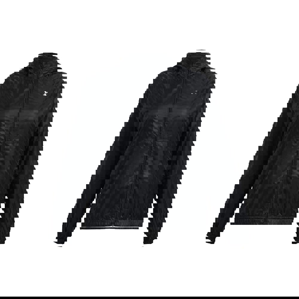 This women’s windbreaker jacket is made from 100% polyester with a ripstop, woven construction and a mesh lining. Finished in black with a plain design and logo detail, it offers a lightweight feel with breathable, durable performance.