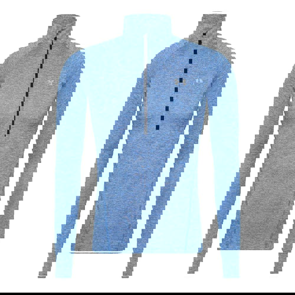 Built for active days, this Under Armour women’s long-sleeved T-shirt keeps the look clean with a plain finish and subtle logo detail. The blue design is completed with a twist accent and a standing collar, secured by a half zip and pull-on styling for easy wear. Made from soft-touch polyester, it uses UA Tech fabric technology with moisture wicking, odour control and quick-dry properties.