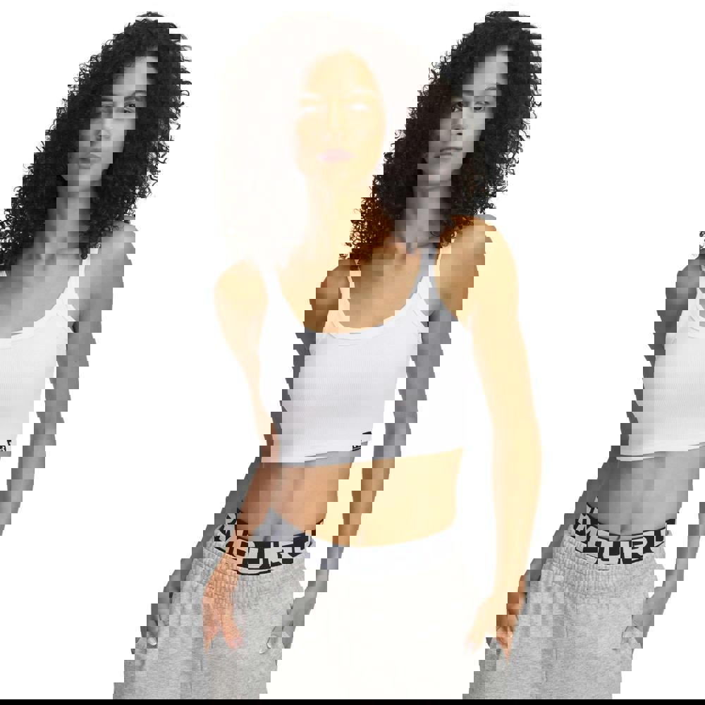 Cut in a cropped length with a square neckline, the Under Armour Rival Ribbed Tank Top brings a clean, sporty look to everyday dressing. This women’s sleeveless style comes in white with a ribbed finish and a logo patch detail. Made from a cotton, elastane and recycled polyester blend, it uses 4-way stretch and a soft-touch handle, with a lightweight feel that suits warm-weather wear and easy layering.