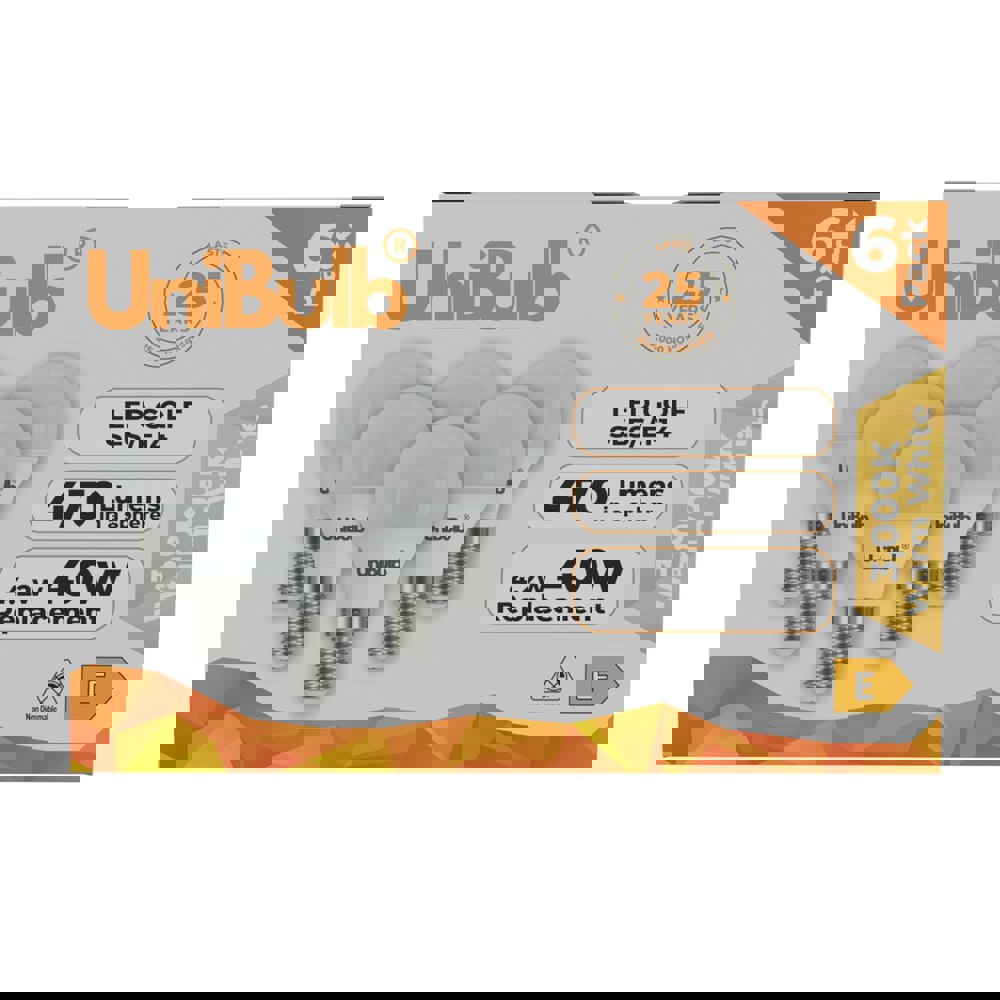 With the UniBulb LED Golf Ball E14 470lm 4. 2W 3000K (Warm White) Light Bulb – Pack of 6, you’re choosing a lighting solution that delivers on practicality, comfort, and versatility. Easy to install, visually appealing, and highly effective, these bulbs are well suited to both everyday use and decorative applications alike.