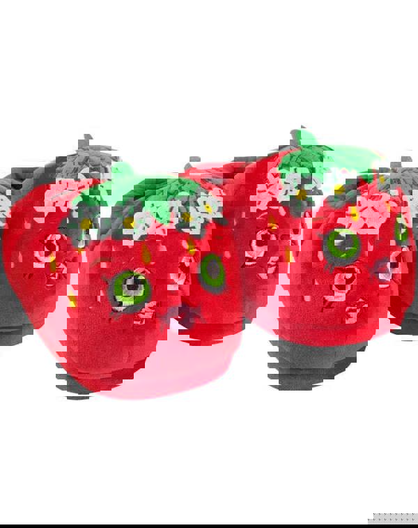 Featuring an adorable cartoon strawberry face which is recreated in embroidery across the front of the slipper, along with additional 3D elements for the character's leafy, flowery hair