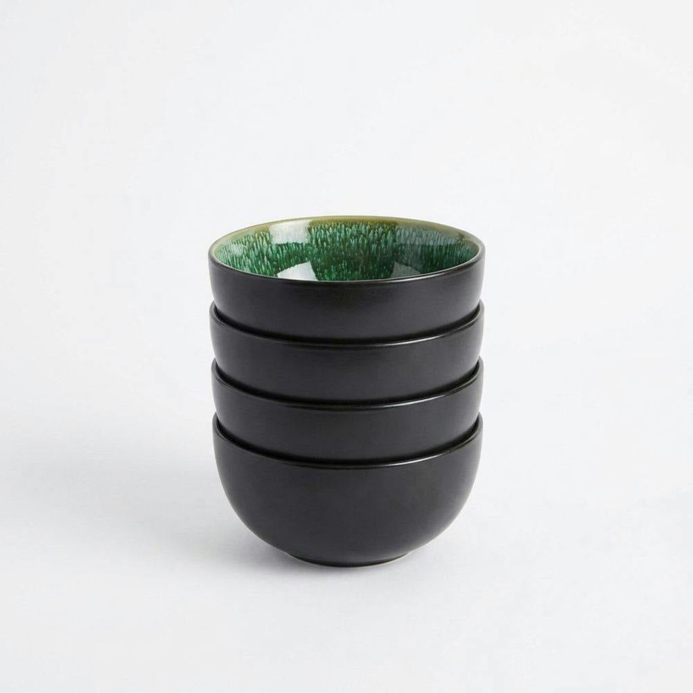 Stoneware ceramic is valued for its strength and suitability for daily dining, making these bowls a practical choice for busy households. The rich green reactive glaze adds depth and warmth to the table, pairing beautifully with neutral linens, natural wood, and modern interiors.