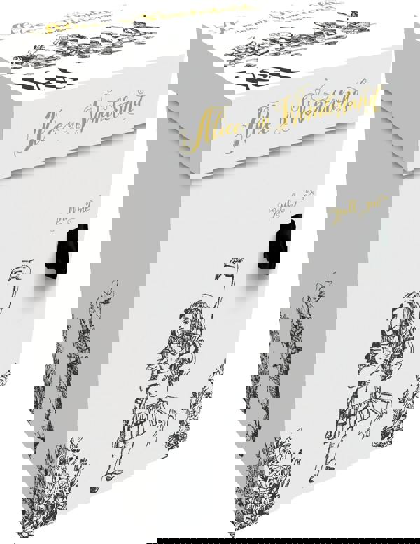 Create your very own version of the Mad Hatters tea party by inviting friends round to enjoy tasty treats and heart-warming drinks, served with this elegant Alice in Wonderland creamer and sugar bowl set. Beautiful black sketch-style illustrations stand out against a backdrop of white fine china, with a gleam that’s reminiscent of the Cheshire Cat’s mischievous grin. The designs are inspired by an Alice in Wonderland card game based on illustrations by Sir John Tenniel (1820 - 1914). Elements of each design, including the White Rabbit’s watch chain and the Mad Hatter’s bow tie, are detailed in gold, so they stand out against the black print. On the sugar bowl, The White Rabbit frets about his tardiness, exclaiming ‘Oh dear! Oh dear! I shall be too late!’, while Alice remarks 'Curiouser and curiouser!' on its other side. The jug depicts Alice at the Mad Hatter’s tea party, where he reassures her, ‘We’re all mad here’. The spherical sugar bowl is topped with a round lid that has a slot for a small spoon, while the globe-shaped jug has a generous pouring spout and handle. Match them with other items from the V&A Alice in Wonderland range to create a complete, a cute, afternoon tea set.