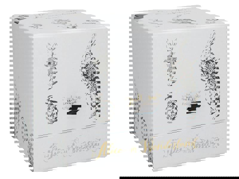 Turn daily coffee breaks in to your very own Mad Hatter's tea party, by sipping hot drinks from this lovely white mug, from the Alice in Wonderland collection, by V&A. This mug is decorated with a black and white illustration of the White Rabbit. Snappily dressed in a waist coat and blazer, he checks his pocket watch, which is finished in stunning gold detail. The design is inspired by the Alice in Wonderland card game, with artwork by Sir John Tenniel (1820 - 1914). His famous fret, ‘Oh dear! Oh dear! I shall be too late!’ lines the inside rim of the mug. Turn the tea mug around and you’ll see the White Rabbit scampering off in to the distance, capturing the moment that Alice’s adventures first began. And that's not all! Just like Wonderland, this mug is packed with new surprises at every turn. Finish your drink and you'll see the image of his pocket watch appear in the base.