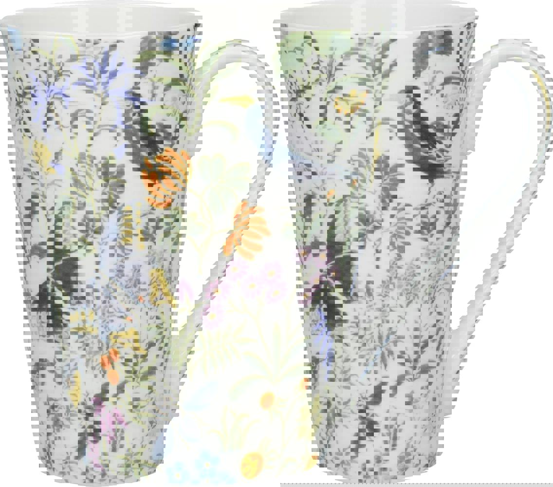 Make tea time feel all the more elegant with this official V&A mug, featuring the lovely Bee Garden design. Inspired by a piece of art from archives of The Victoria and Albert Museum, this conical-shaped mug features a colourful array of bee-garden flora and fauna. Bright flowers bloom, bees and other insects buzz around, and beautiful birds perch amongst them. This beautiful coffee cup is made of fine bone china for lasting strength and timeless elegance. It also comes presented in a matching patterned gift box, making it a perfect gift for anyone who loves antique furnishings or vintage designs.