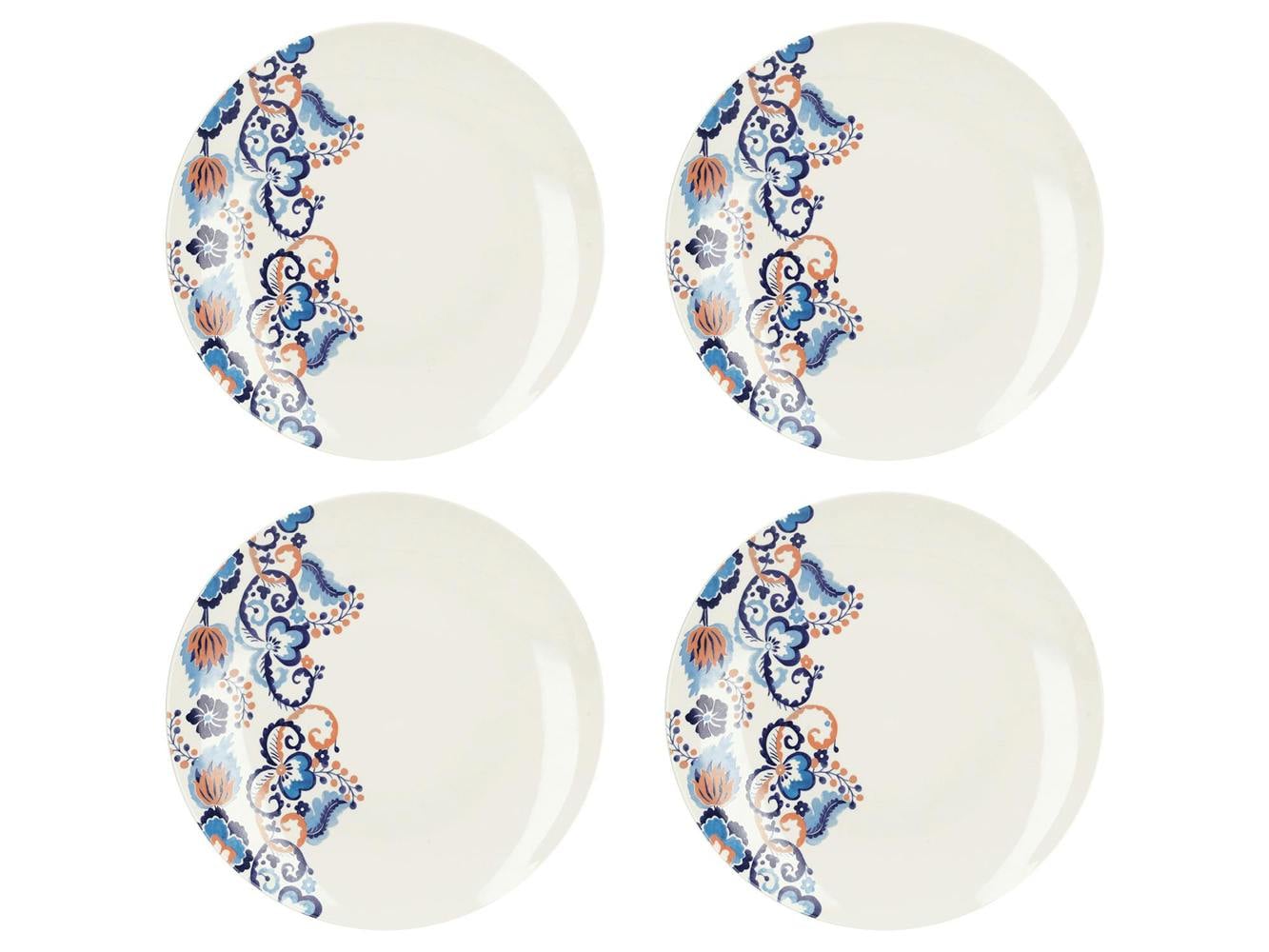 Take in and admire the elaborate floral patterns of V&A's Rococo Silk collection every time you take a seat at the dining table. This stunning dinnerware collection commemorates the woven silk designs of influential textile designer, Anna Maria Garthwaite. These patterns see vibrant blue and rich terracotta-coloured sprigs of flowers gently curl, curve and unfurl across clean white backdrops. Frame your favourite dishes in inspirational style with this floral patterned dinner plate set. It's perfect for any dining occasion: whether you're serving beef wellington at a dinner party, or enjoying a casual brunch of breakfast eggs and smoked salmon. These dinner plates are made of durable fine china too, so you can share their beautiful look on a daily basis.