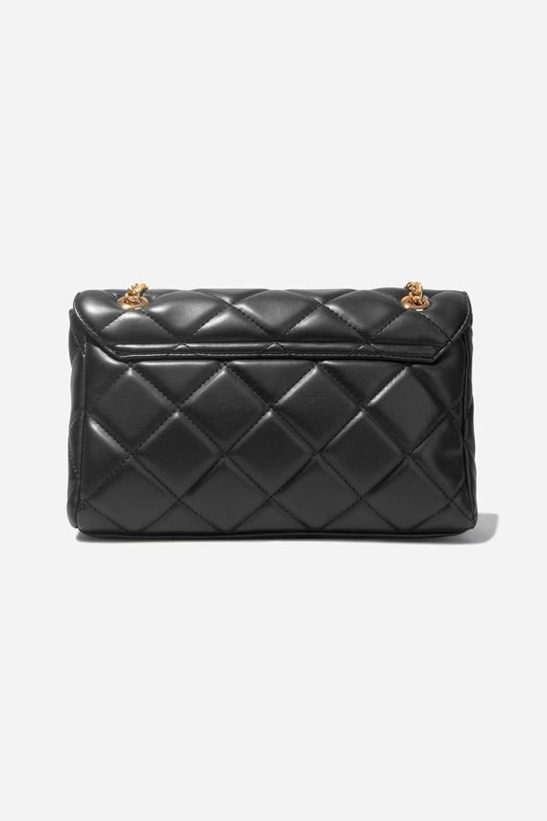 From Mario Valentino, the Ada Flap Bag brings a quietly luxurious finish to everyday looks. Designed for girls, it comes in black with a quilted design and iconic branding, balanced by gold chain shoulder straps for a polished touch. A flap fastening keeps the silhouette neat and secure, making it an easy choice for day-to-day wear when you want a compact bag with considered detail.