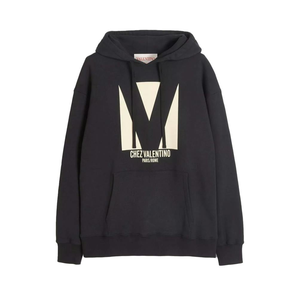 Crafted from premium 100% cotton, this Valentino Chez Valentino Print Hoodie in Black exemplifies Italian tailoring with its relaxed silhouette and refined construction. The signature Chez Valentino print adorns the chest, delivering understated designer appeal. Elasticated ribbed trim at the cuffs and hem ensures a polished finish, whilst the drawstring hood provides practical versatility. Made in Italy, this piece seamlessly transitions from casual wear to layered styling, offering both comfort and contemporary sophistication