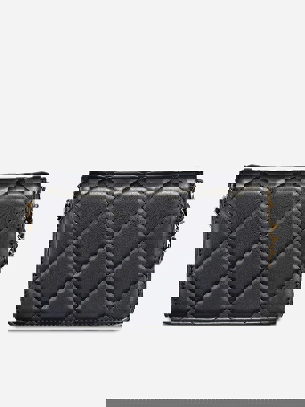 Finished with polished gold-coloured metal fittings, this black bag closes securely with a plug fastener. An adjustable shoulder strap lets you tailor the fit, while the interior features a plain coloured polyester lining and a combination of compartments and pockets for simple, organised storage.