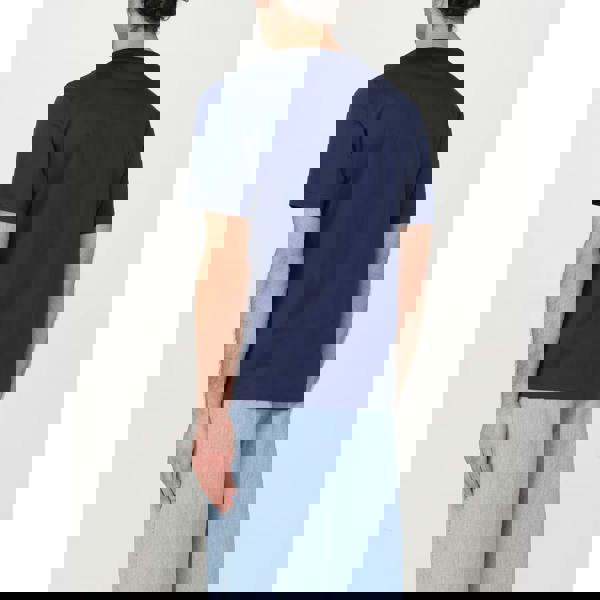 This Valentino Plaque Logo T-Shirt in blue features a contrasting logo that stands out against its soft cotton fabric. Designed with a classic crewneck and relaxed shoulders, it offers comfortable wear throughout the day. The short sleeves and straight hemline complete its clean, versatile look, making it a refined addition to any casual wardrobe
