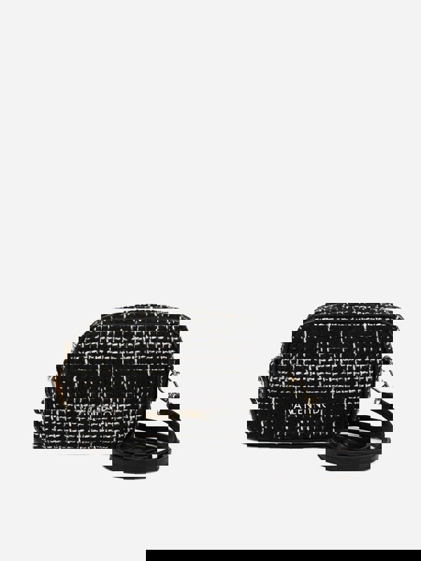 This girls tweed camera bag is designed to bring a polished finish to everyday outfits. With its black tweed look and compact crossbody style, it offers a practical way to carry essentials while keeping her hands free.