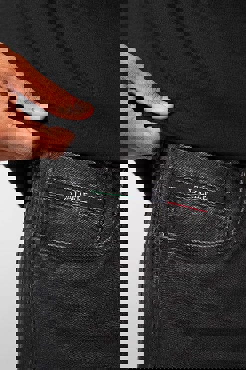 A clean, classic profile meets everyday practicality in the Valere Milano Lusso Clean Jeans. Cut in a relaxed tapered fit, this black overdyed denim pair keeps the look streamlined while retaining a traditional five-pocket layout.