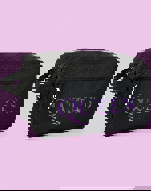 This black wash bag features the logo of the famous band printed in purple.