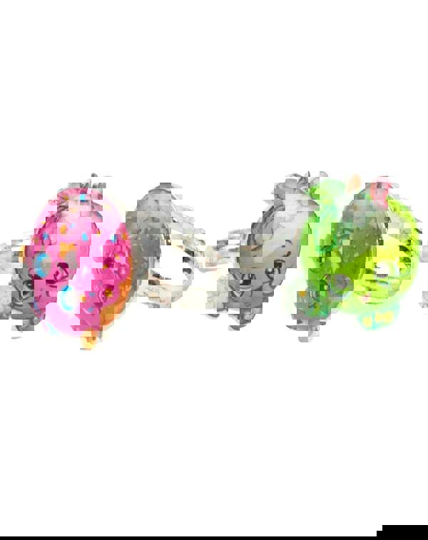Add some Shopkins style to your outfit with this sweet children's ring set! This set includes 5 rings featuring some of the favourite Shopkins characters: D'Lish Donut, Apple Blossom, Strawberry Kiss, Poppy Corn, and a Shopkins "S.