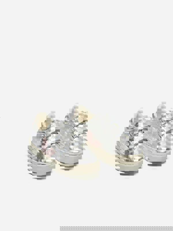 The Veja Girls Small Esplar Leather Trainers in Silver are a refined choice for SS2026, designed to bring a polished finish to everyday outfits and special occasions alike. Finished in a radiant silver hue, they add a standout touch to a young wardrobe while keeping the look clean and contemporary.