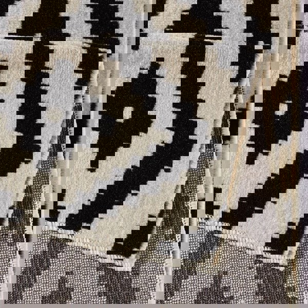 Style Tip: Complement minimal or monochrome décor to let the rug’s pattern take centre stage. The sophisticated black-and-cream palette adds modern elegance while maintaining harmony in your space.