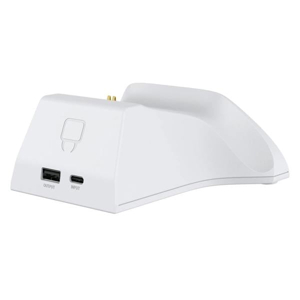 Charging is simple: place the controller onto the dock and the rear contacts align automatically with the charging points. A front LED indicator shows status at a glance, illuminating red while charging and turning green when fully charged. The dock continues charging when the console is in standby mode and includes a detachable 2 metre USB Type-C cable for flexible placement. An additional USB output port on the rear also allows you to connect another USB-charged device.