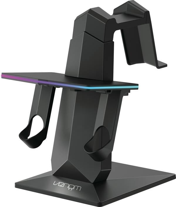 Bring order and atmosphere to your VR setup with the Venom RGB Charging Stand, a headset charging dock and display stand for Meta Quest 3S, Quest 3, Quest 2 and Quest Pro. A USB Type-C charging connector keeps your headset powered while the vertical, space-saving profile creates a neat home on a desk or shelf. Finished with a 7-colour RGB lighting base, it adds a clean, colourful glow around your headset without taking over your space.