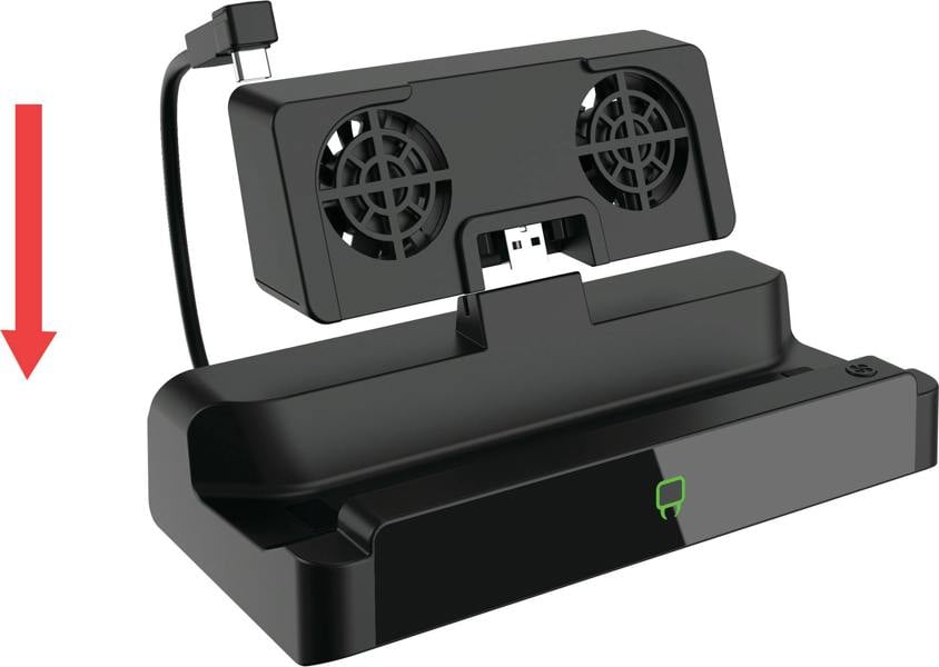HDMI 2.1 output lets you connect to a TV or monitor, with support for up to 4K resolution at 144Hz for high-definition viewing. For power while you play, USB-C pass-through charging supports up to 100W, so your device can stay charged while accessories are connected. Detachable twin cooling fans with three speed settings help manage heat during longer sessions, while a built-in 1Gbps Ethernet port provides a stable wired connection for online play.