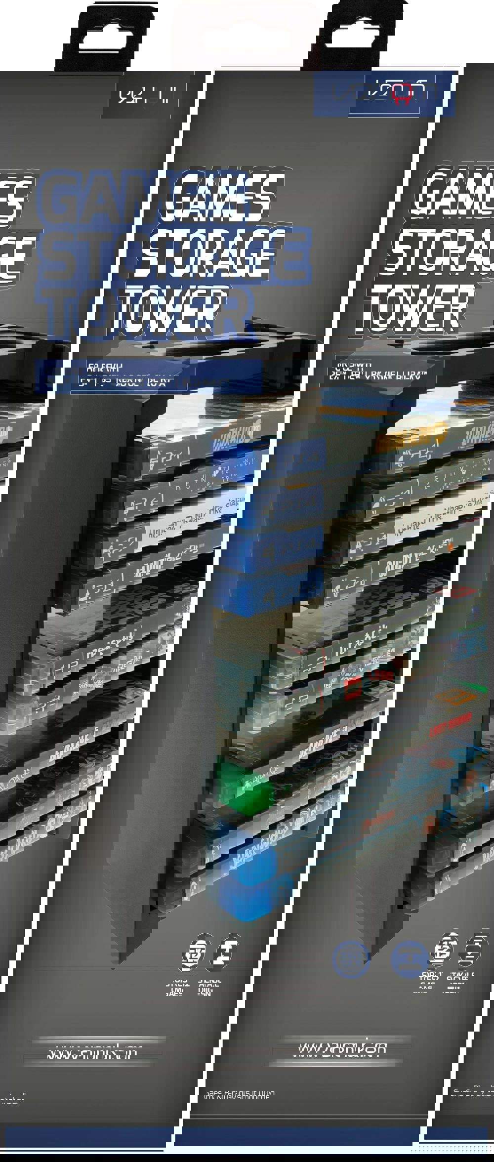 Keep a growing collection neatly arranged with the Venom Universal Games & Blu-ray Storage Tower, a compact storage solution for Xbox One, PS4 and PS3 game cases, as well as DVDs and Blu-ray discs. Its clean, vertical format helps keep shelves and entertainment units organised, while staying in keeping with a console and home entertainment set-up.