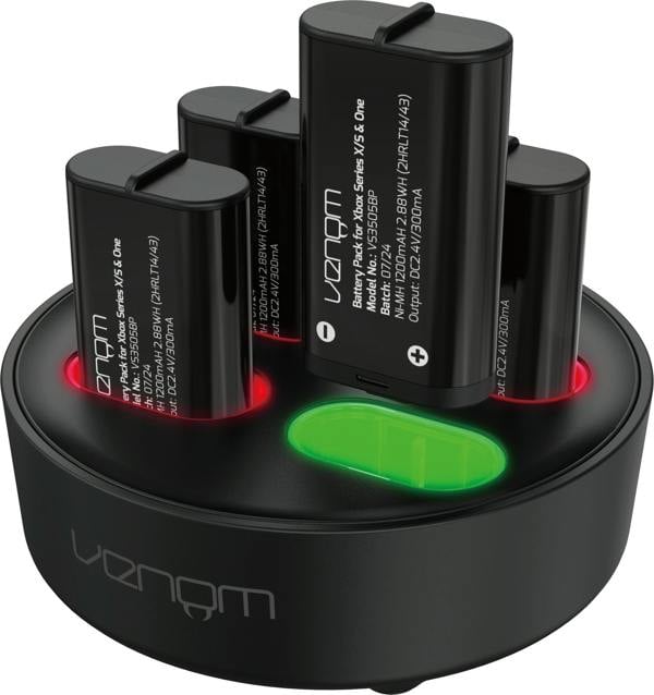 Venom’s Rechargeable Battery Pack & Charging Dock is a complete charging solution for Xbox Series X, Xbox Series S and Xbox One controllers. This set includes four rechargeable battery packs, each rated at 1200mAh (2880mWh), offering a practical alternative to disposable batteries for regular play.