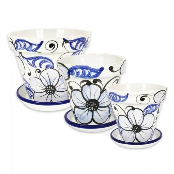 With a beautiful blue flower pattern, these plant pots will add a touch of elegance to your garden or home.