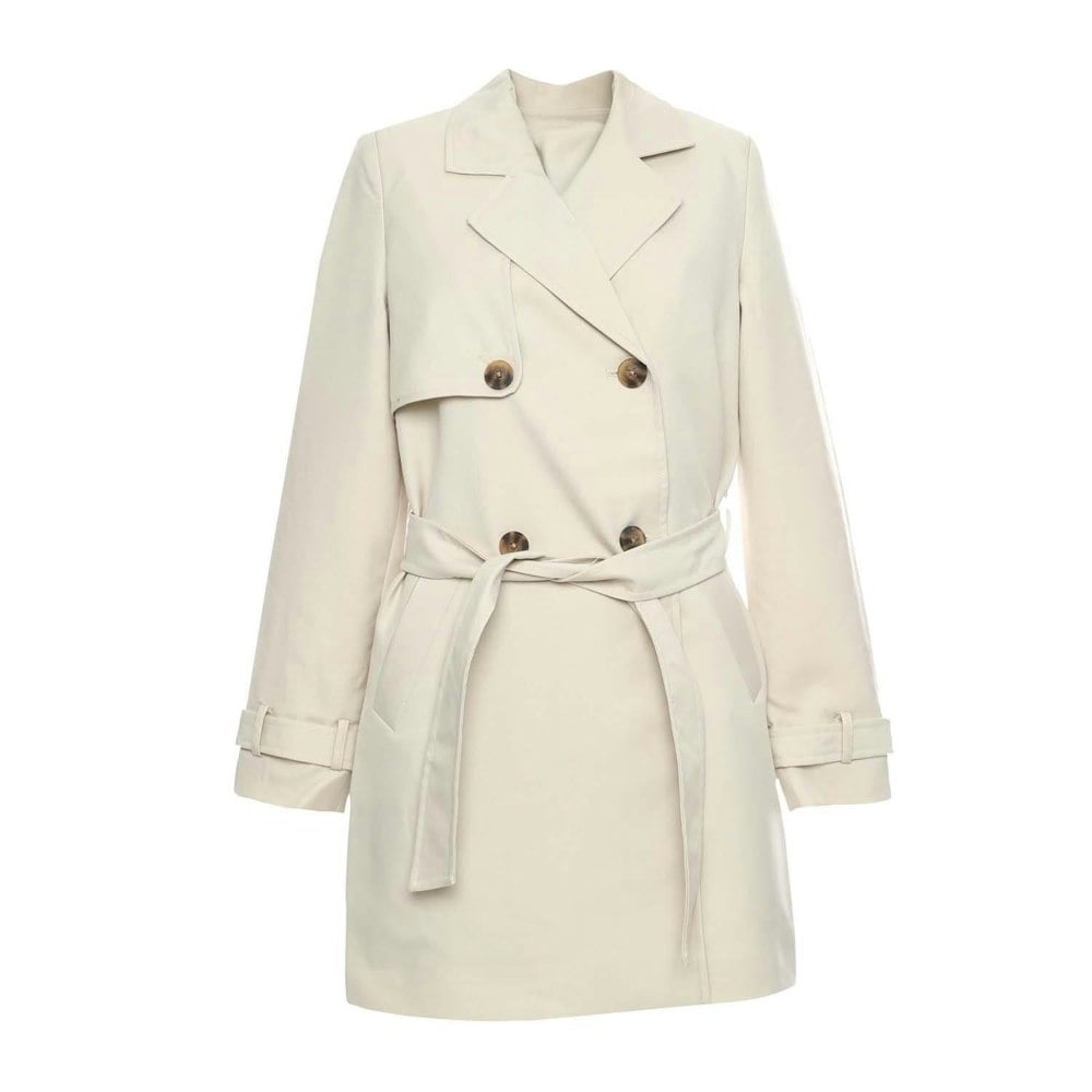 This trench coat from Vero Moda comes in an oatmeal shade with a plain finish and tone-on-tone seams. Made from 100% polyester, it has a lapel neckline and long sleeves for a classic outerwear silhouette.