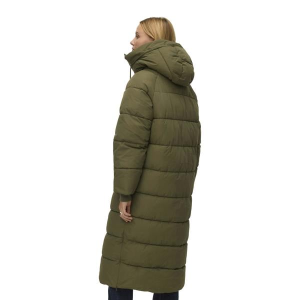 Cut to a long length, this padded jacket is made from 100% recycled polyester and fully lined for a clean finish. The plain green outer keeps the look understated, while the hooded neckline includes a drawcord for adjustable coverage.