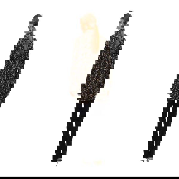 This brushed jacket combines recycled polyester and polyester with an all-over leopard print in brown. A long length and long sleeves create a streamlined outer layer, finished with a V neck for a clean neckline.