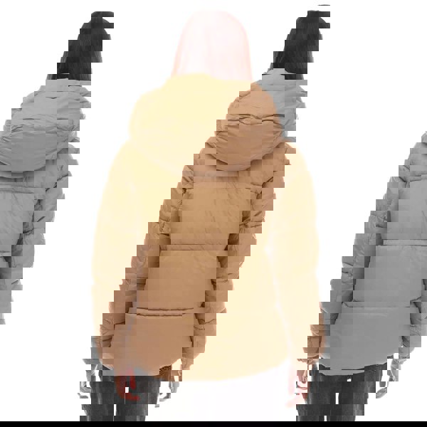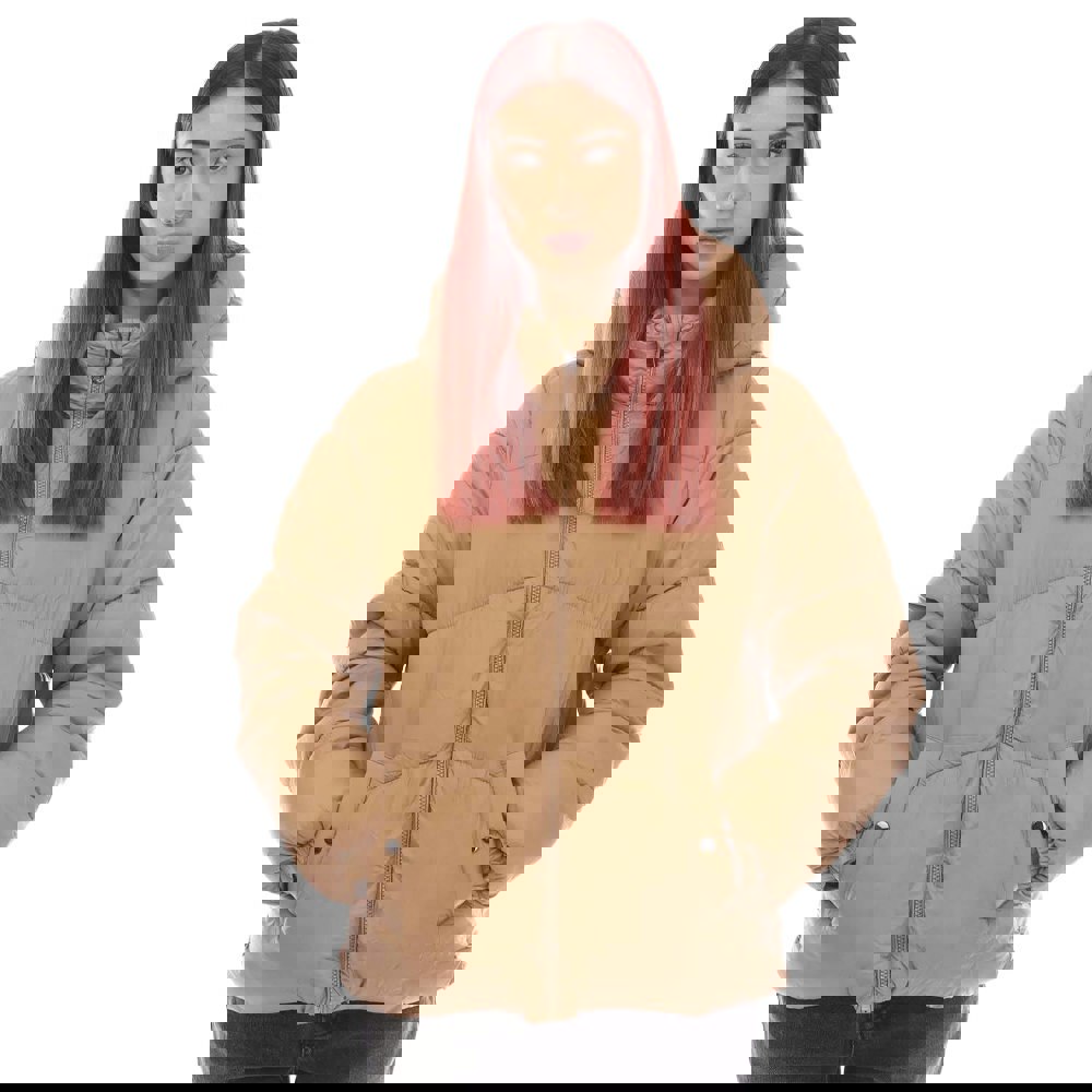 This short padded jacket from Vero Moda comes in beige with a quilted finish and a funnel neck with an attached hood. Long sleeves and elasticated cuffs keep the silhouette neat, while a full-length zip fastening provides a clean, practical closure. Two side pockets complete the design for everyday wear.