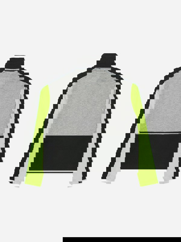 Presented in grey, this piece keeps the focus on the label’s signature logo detail and practical half-zip styling.