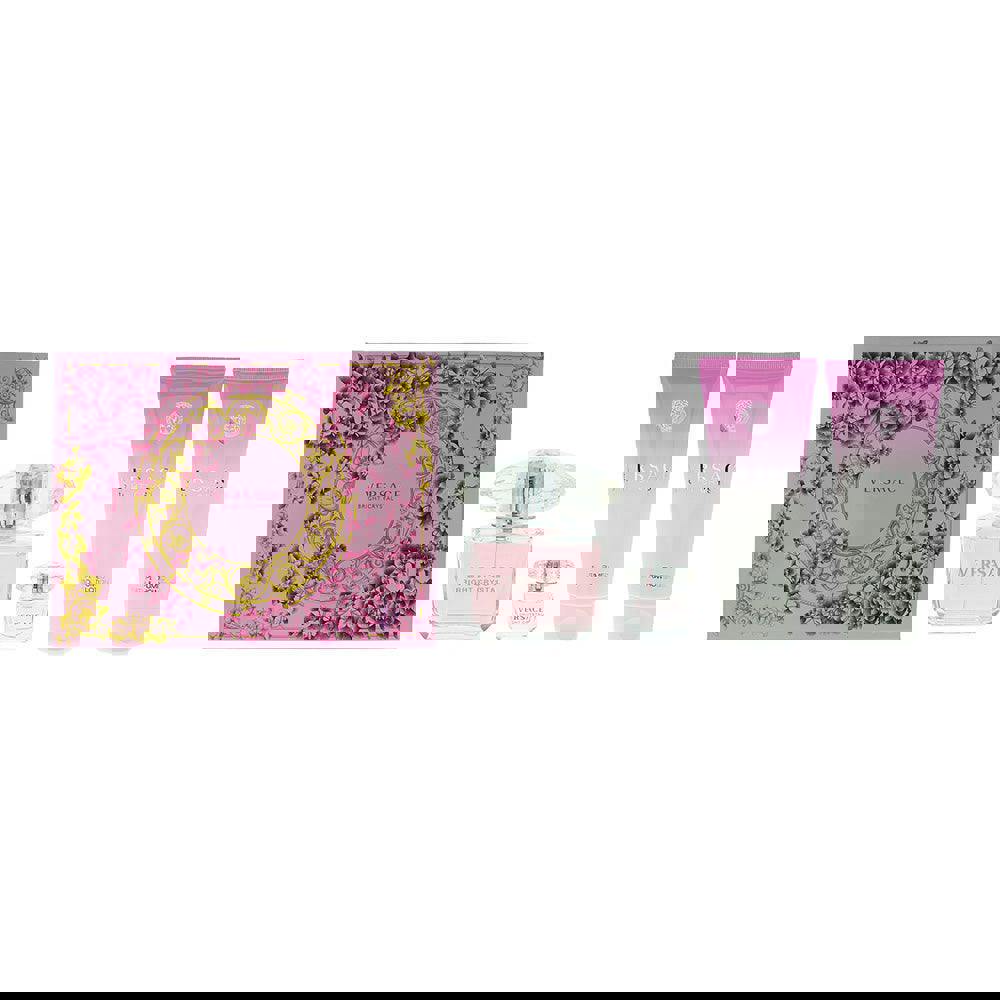 Versace Bright Crystal is a fresh floral fragrance presented here as a four-piece gift set, pairing the signature eau de toilette with matching body essentials. Light and luminous in character, it is known for its sparkling, clean feel that suits everyday wear and is especially fitting for spring and summer.