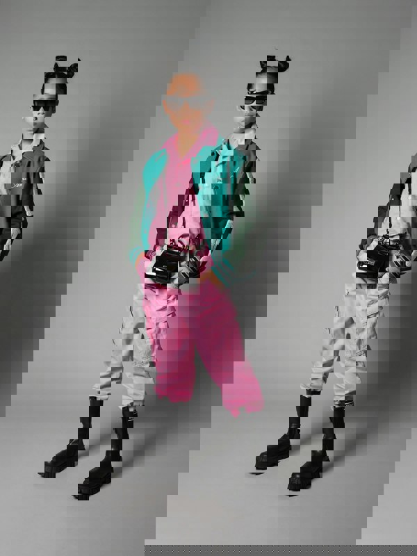 Versace girls cargo trousers in pink with a cargo-style design. Made in Italy.
