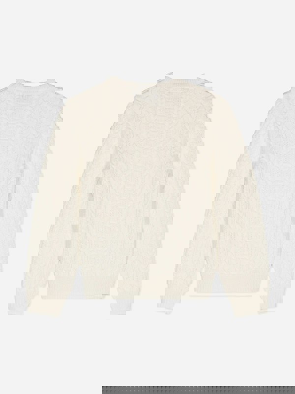 This Versace Kids jumper comes in an ivory cable knit, made in Italy from 100% virgin wool. A crew neck and long sleeves give it a classic shape, finished with the Medusa embroidered logo on the front.