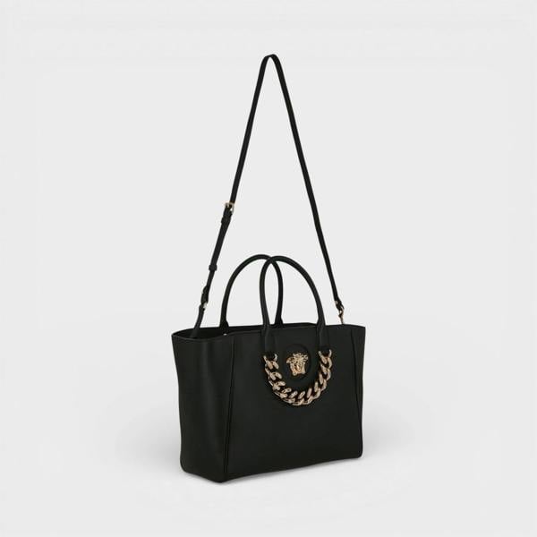 From Versace, the La Medusa Medium Tote Bag in black brings a polished, structured look to everyday carry. Defined by the brand’s Medusa motif, it balances a refined silhouette with the practical space needed for daily essentials, making it an easy choice for busy days when you still want a considered finish.