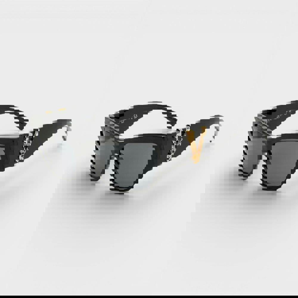 Crafted from acetate, these sunglasses offer a durable feel for regular use. The black frame is complemented by gold-tone detailing for a refined, statement look that pairs easily with both casual and smarter outfits. A logo detail adds a distinctive finishing touch, making them a standout choice when you want your eyewear to do more than simply complete an outfit.