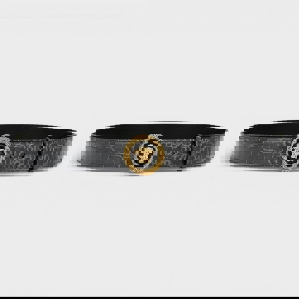 The Medusa Croc-Effect Belt brings a refined finish to everyday and occasion looks, combining a multi-tonal palette of black and grey with gold-tone hardware. Designed to sit neatly at the waist, it adds definition to denim, tailored pieces or dresses, making it an easy styling choice when you want a polished silhouette.