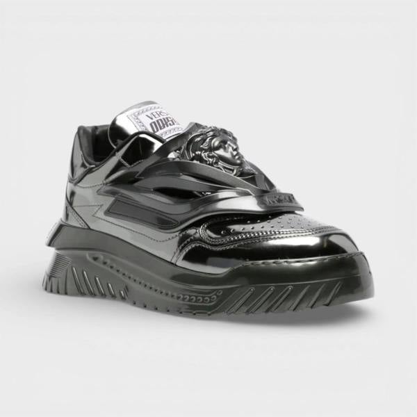 The Versace Odissea Leather Low-top Trainers in gunmetal bring a refined finish to everyday dressing. Crafted from leather, they offer a clean low-top profile that works across casual and smart-casual looks, making them an easy choice for regular wear.