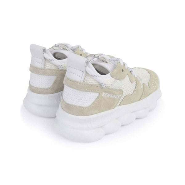 Versace Unisex Chain Reaction Trainers in ivory. Made in Italy, this pair reflects the brand’s Italian craftsmanship. A glossy finish adds a distinctive look, keeping the design clean and eye-catching.