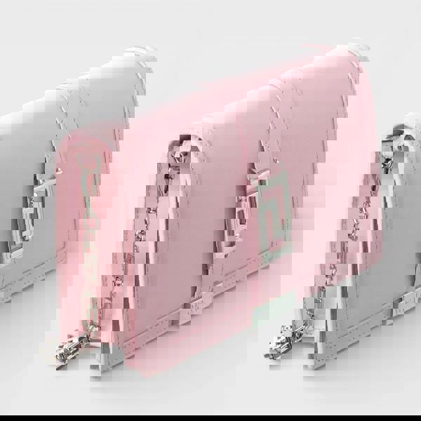 The Versace Wallet On Chain shoulder bag brings a polished finish to everyday looks in a compact, easy-to-carry silhouette. Crafted in pink leather and made in Italy, it is finished with silver-tone hardware and a Versace logo buckle for a distinctive, refined touch.