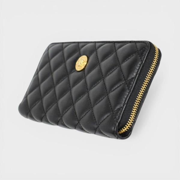 From Versace, this zip around Wallet is crafted from quilted lamb leather in a sleek black finish, bringing a refined look to everyday organisation. The quilted texture adds subtle dimension, while the streamlined silhouette is designed to sit neatly in your bag or carry by hand.