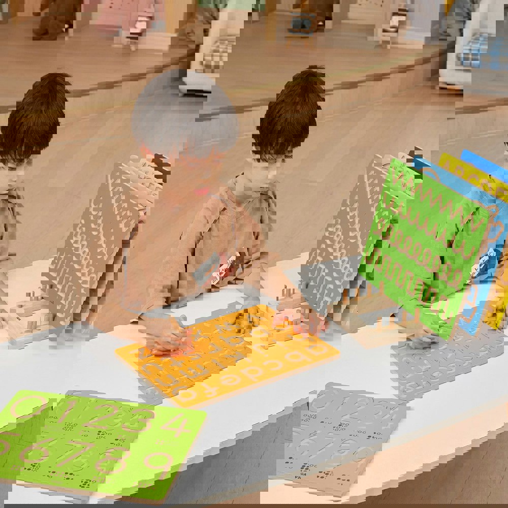 Set includes: 1 Tracing board with letter shaped grooves