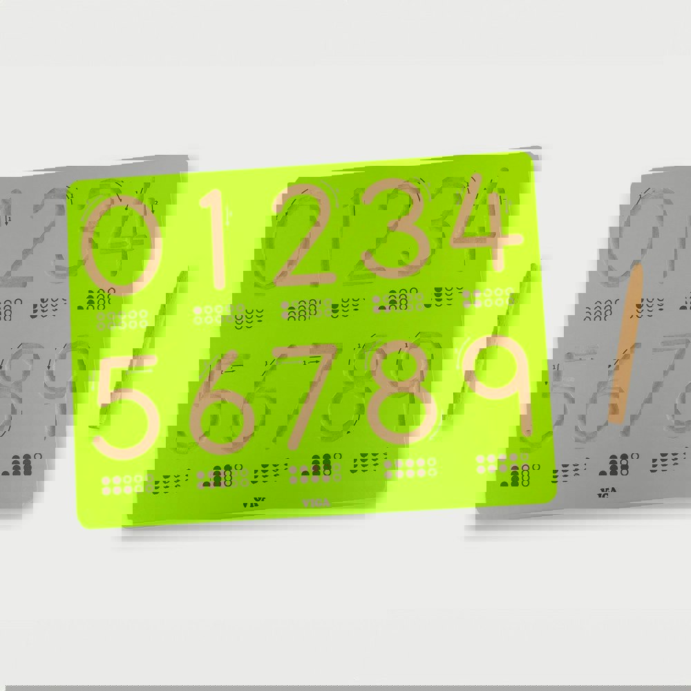 Set includes: 1 Tracing board with number shapes grooves (0-9)