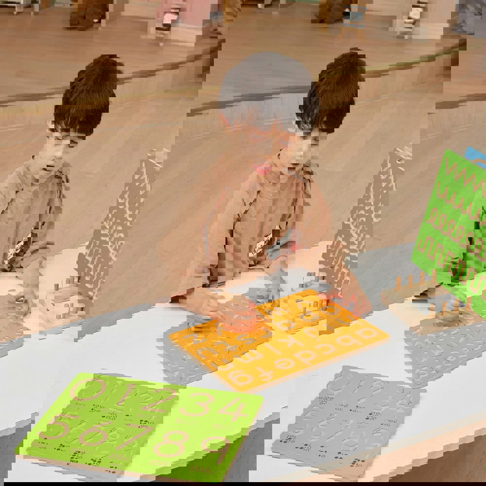 Each number is carefully engraved with directional arrows, guiding children on the correct way to form their numbers, making early writing practice both intuitive and enjoyable. The smooth grooves provide just the right amount of sensory feedback, allowing children to control their hand movements while developing muscle memory through repeated tracing.