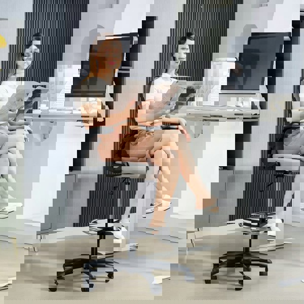 This mesh office chair, from Vinseto, comes in a draughtsman design - great for working at higher levels. Adjust the height between 52-72 cm easily, thanks to the under-seat lever. The padded seat, curved mesh back, flip-up arms and five-wheeled base make it a pleasure to sit on and use, supporting you as you work. Adjust the bottom bar to rest your lower body comfortably. Tall surfaces? No problem!