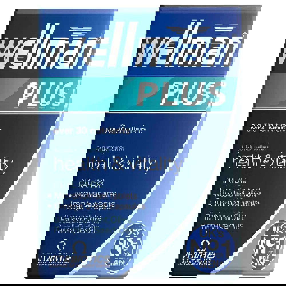 The advanced Wellman Plus Omega 3·6·9 formula provides over 30 nutrients with all the comprehensive nutritional benefits of Wellman Original, plus the added benefits of Omega-3, 6 & 9. These EFA's (Essential Fatty Acids) are sourced from Blackcurrant and Pumpkin seed oils, Omega-3 Fish Oil and Olive Oil. This premium Wellman formula, from the UK's number 1 men's supplement brand, is designed for men who lead hectic lives, with work, sports and social commitments yet still need to maintain general health and vitality. Comes in a handy dual pack.
